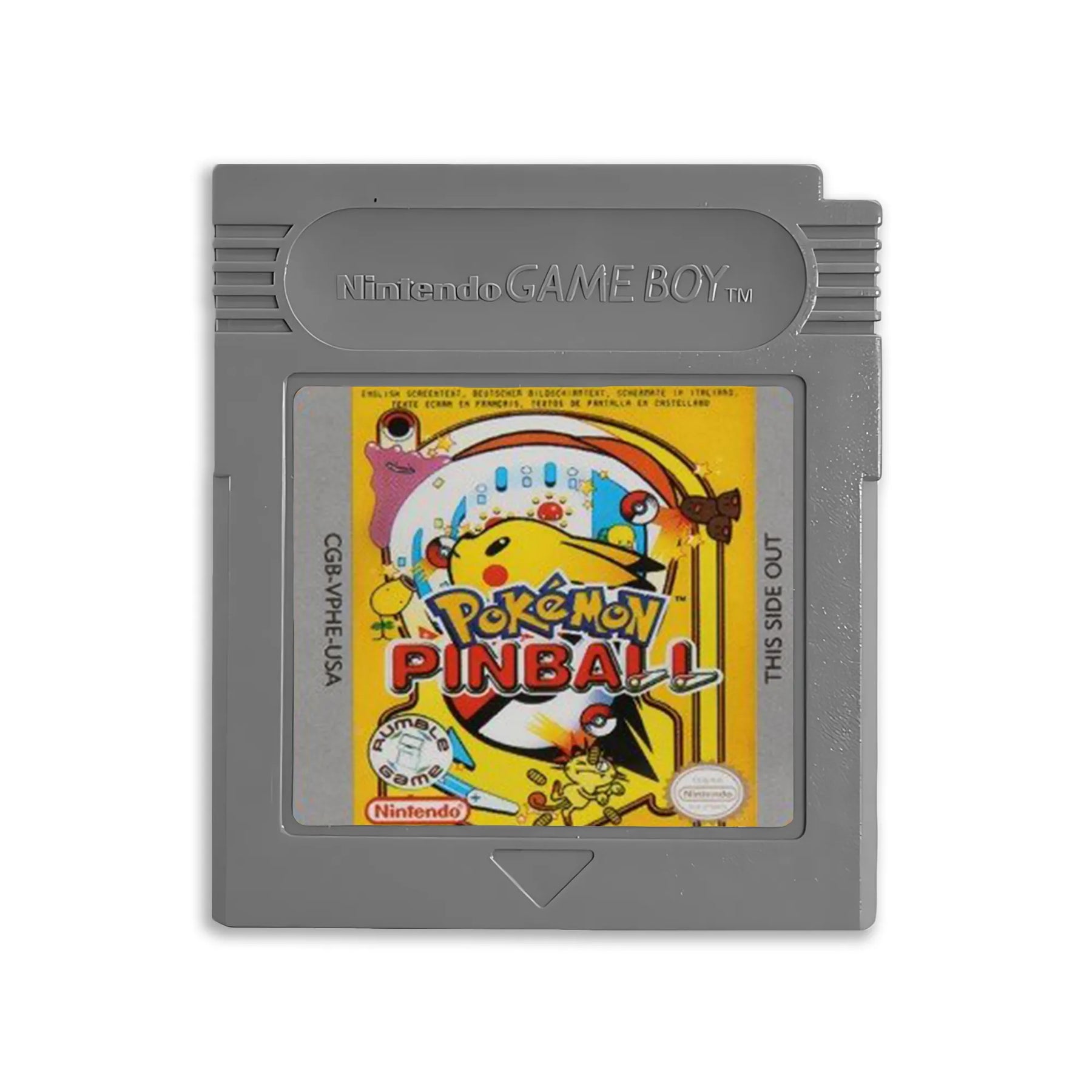 Pokémon Pinball cartridge for Nintendo Game Boy (compatible with Game Boy, Game Boy Pocket, and Game Boy Color; includes built-in rumble feature).
